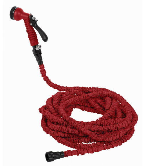 Kompaktní zahradní hadice, která se snadno skladuje a přesto nabízí dostatečnou délku, aby dosáhla do všech koutů vaší zahrady. To je naše flexibilní zahradní hadice Kreator KRTGR67013! Navíc je hadice dodávána s praktickou stříkací pistolí s nejméně 7 různými vzory stříkání. Díky tlaku vody se hadice roztáhne na délku 30 m, takže můžete stříkat i ty nejvzdálenější kouty vaší zahrady. Po použití se zmenší na velikost, kterou lze pohodlně uložit: 10 m. Ujistěte se, že jste zavřeli kohoutek a vypustili zbývající vodu, aby se uvolnil tlak, když se hadice nepoužívá, aby byla zaručena dlouhá životnost.