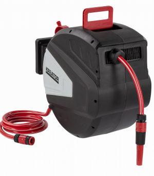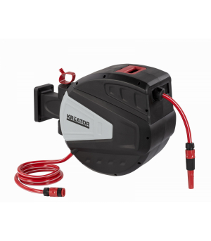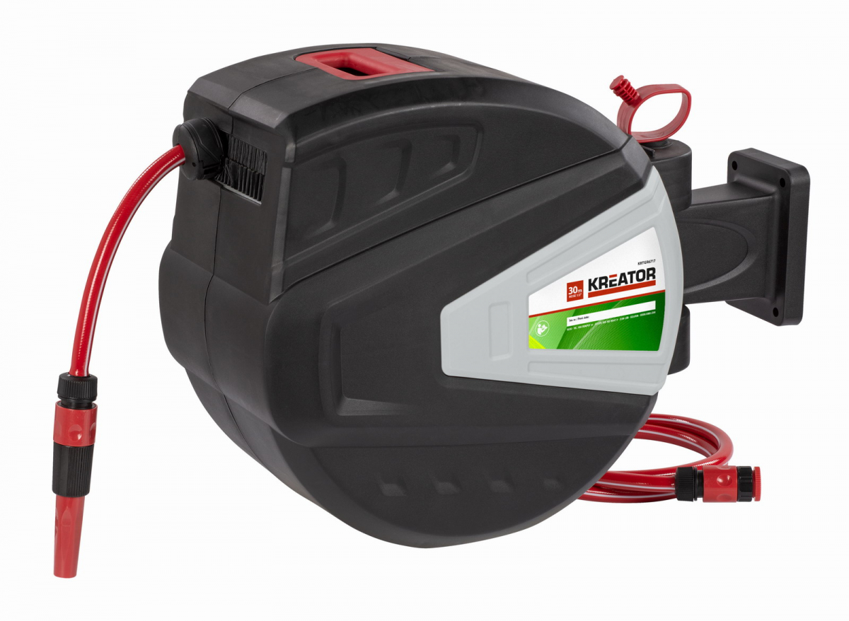 Pokud chcete zalévat celou zahradu bez objemné zahradní hadice, která vám neustále překáží, tento naviják a zahradní hadice KRTGR6717 Kreator je zahradním nářadím pro vás. Co můžete s tímto hadicovým navijákem dělat? Tento hadicový naviják lze snadno připevnit na zeď a připojit ke kohoutku. Ujistěte se, že jej namontujete maximálně 2 metry od kohoutku, protože tak dlouhá je připojovací hadice. Naviják na hadici obsahuje 30 m ½“ zahradní hadici, takže je ideální pro větší zahrady. Pomocí montážního držáku připevněte naviják hadice ke zdi. Zahradní hadice tak bude vždy úhledně uložena a nebude vám neustále překážet. V zimních měsících můžete hadicový naviják odpojit od držáku a snadno jej uložit, díky jeho kompaktní velikosti. Naviják hadice sleduje vaše pohyby a může se otáčet o 180°, čímž zabraňuje ohýbání nebo zamotávání hadice. Díky nízké hmotnosti a praktické rukojeti můžete tuto hadici bez námahy přemístit, například ji uložit na zimu.