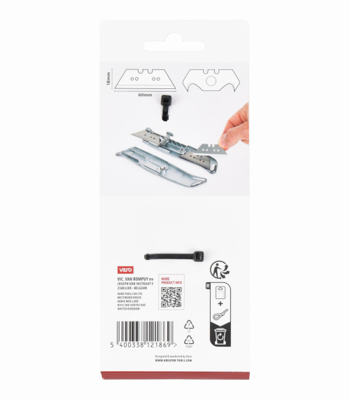 S tímto robustním nožem KRTH00202 od Kreator ze slitiny zinku snadno řežete koberce, vinyl, střešní krytinu, obaly a podobně. Můžete použít rovné i zahnuté čepele. Pro vaši bezpečnost se čepel dá po použití okamžitě zasunout zpět. Čepel můžete zaaretovat pomocí zajišťovacího mechanismu.