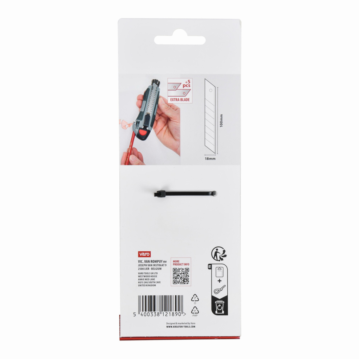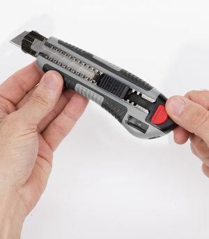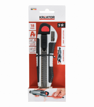 Snadno řežte papír, karton, tapetu, pásku a další materiály s tímto KRTH00205 od Kreator extra dlouhým odlamovacím nožem o délce 100 mm. Měkká gumová rukojeť poskytuje lepší úchop a pohodlné používání nástroje. Rukojeť je také vybavena ořezávátkem. Pro vaši bezpečnost se čepel dá po použití okamžitě zasunout zpět. Čepel můžete zaaretovat pomocí zajišťovacího mechanismu. Když bude potřeba nová, ostřejší čepel, jednoduše odlomíte tupou část pomocí odlamovače na čepel. Odlamovací nůž je navíc dodáván s pěti náhradními čepelemi, které můžete uložit do duté rukojeti.