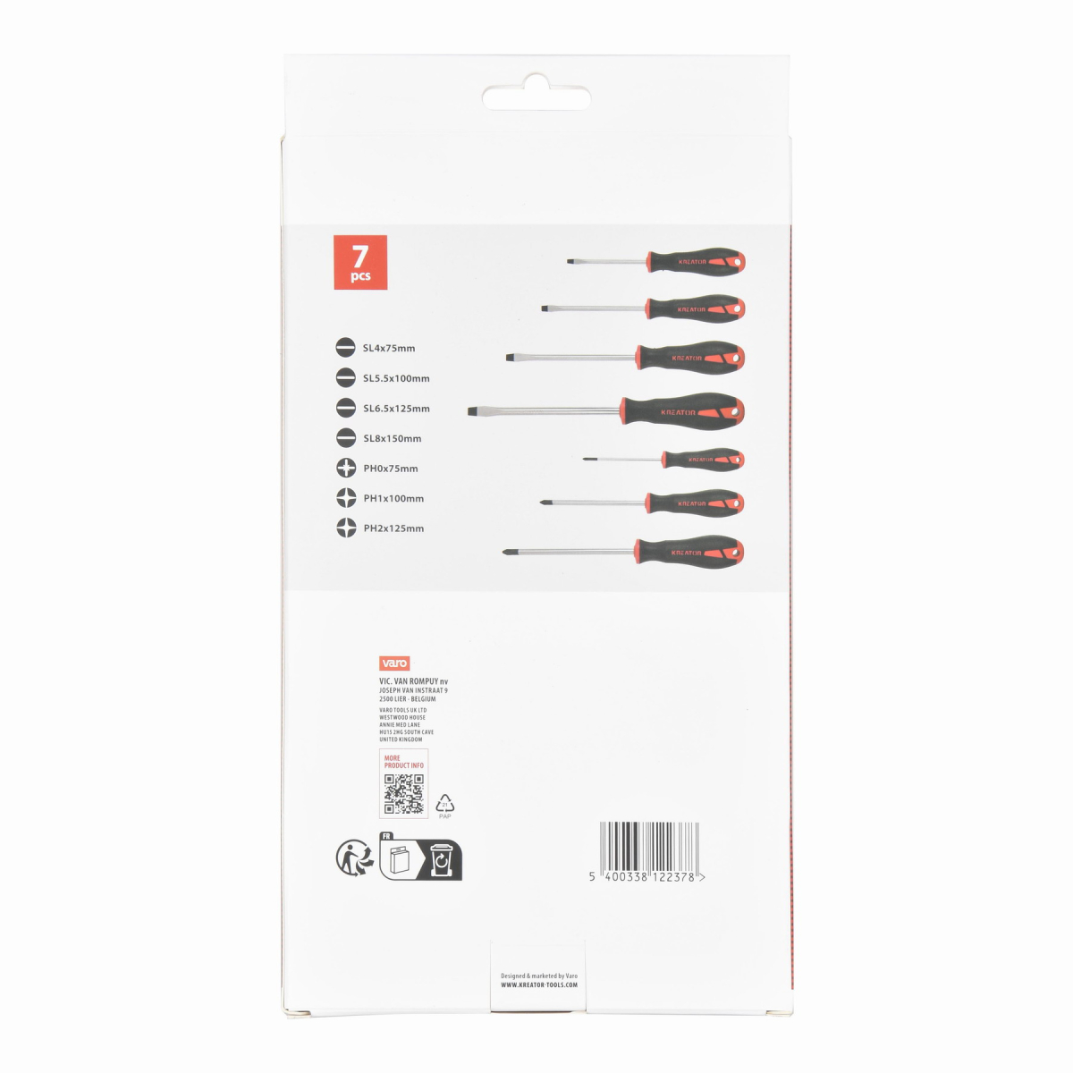 Tato sada se 7 šroubováky KRTH20002 z naší řady Kreator je vyrobena z chrom-vanadiové oceli a šroubováky mají magnetický hrot, takže můžete snadno upevnit každý šroub. Sada obsahuje ploché šroubováky a také šroubováky PH. Měkká ergonomicky tvarovaná protiskluzová rukojeť zajišťuje pevný úchop.