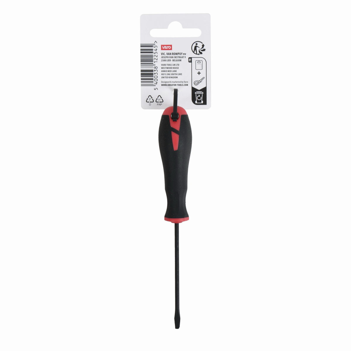 Tento plochý šroubovák 3 KRTH20302 z naší řady Kreator má 75 mm dlouhou stopku a je vyroben z vysoce kvalitní oceli S2. Magnetický hrot urychluje proces šroubování. Měkká protiskluzová rukojeť poskytuje pevný úchop a rukojeť má integrované závěsné oko pro snadné skladování.