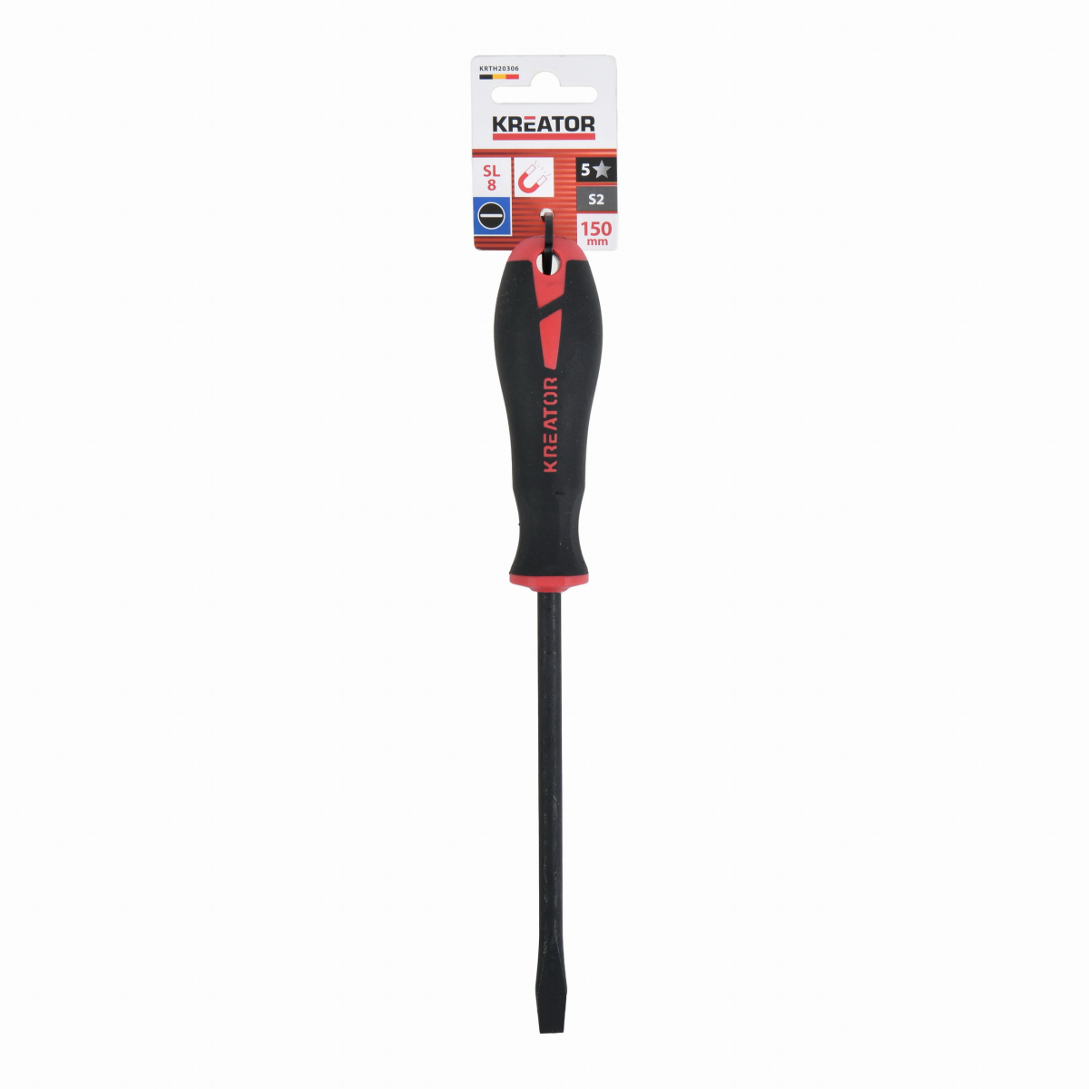 Tento plochý šroubovák 8 KRTH20306 z naší řady Kreator má 150 mm dlouhou stopku a je vyroben z vysoce kvalitní oceli S2. Magnetický hrot urychluje proces šroubování. Měkká protiskluzová rukojeť poskytuje pevný úchop a rukojeť má integrované závěsné oko pro snadné skladování.