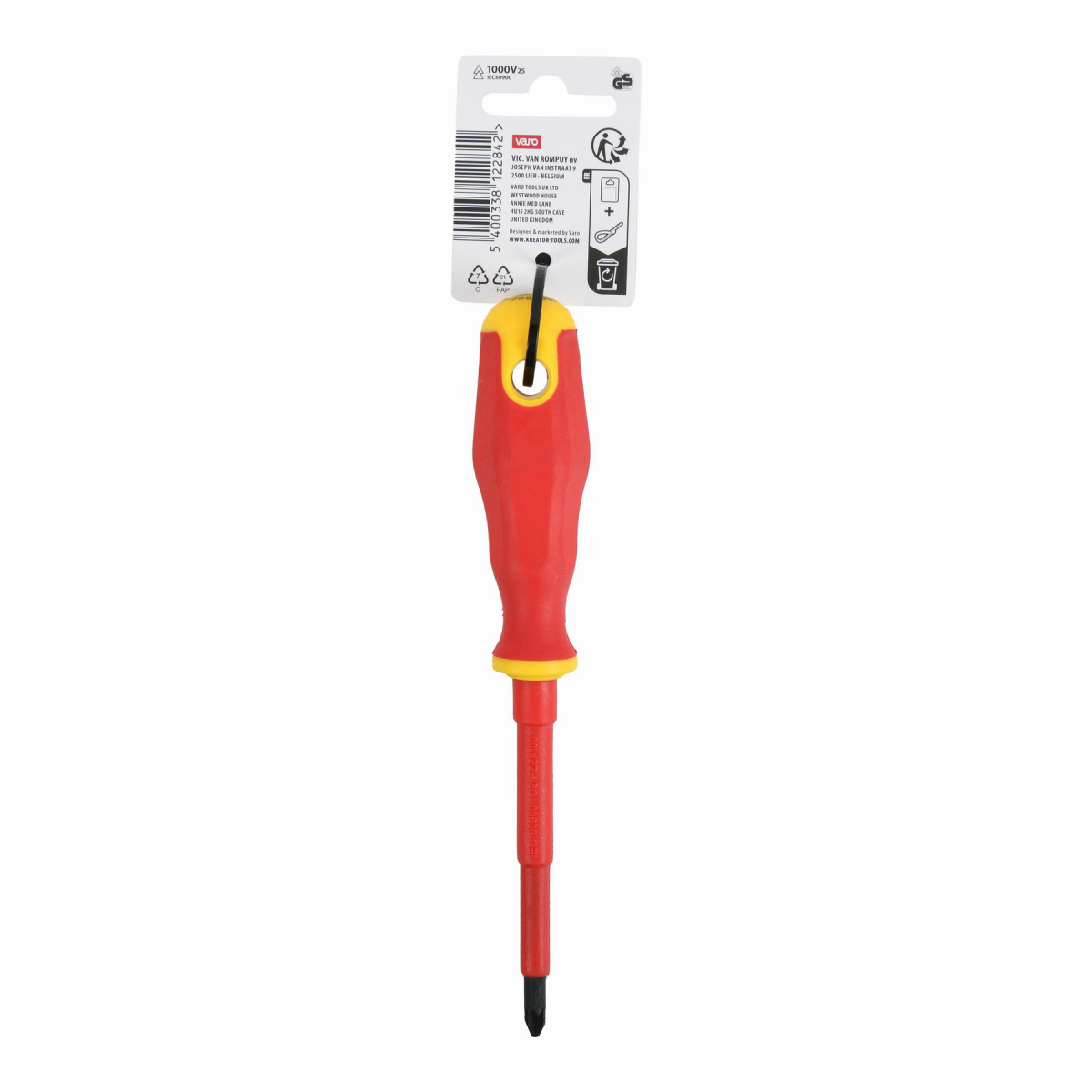Tento elektrikářský šroubovák KRTH21003 z naší řady Kreator má 100 mm dlouhou stopku a je vyroben z vysoce kvalitní oceli CR-V. Magnetický hrot PZ2 urychluje proces šroubování. Šroubovák je ideální pro všechny druhy elektrikářských projektů. Měkká protiskluzová rukojeť poskytuje pevný úchop a rukojeť má integrované závěsné oko pro snadné skladování.
