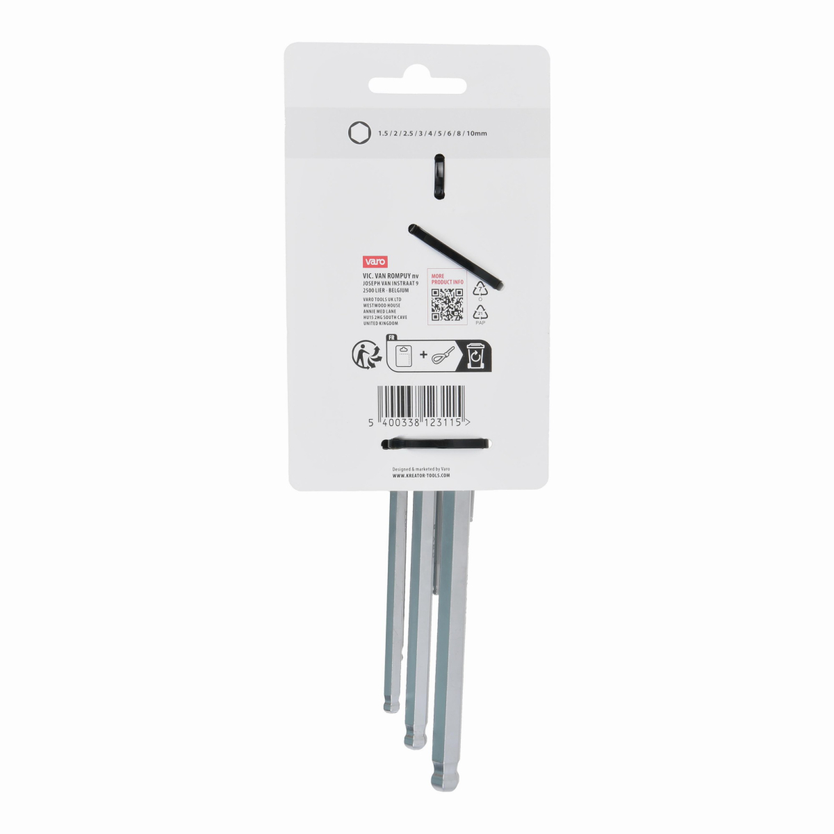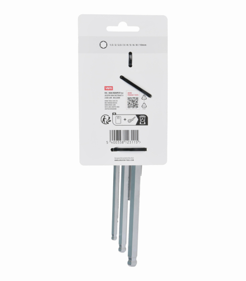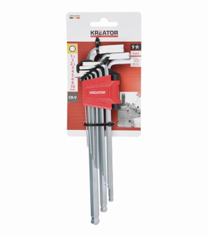 Tato sada KRTH21802 od Kreator obsahuje 9 dlouhých imbusových klíčů ve tvaru L o průměru 1,5 až 10 mm.. Klíče se dodávají v praktickém plastovém boxu pro rychlé a snadné uložení. Na jednom konci jsou klíče ukončeny kuličkou, což znamená, že je můžete použít k zašroubování šroubů pod úhlem.