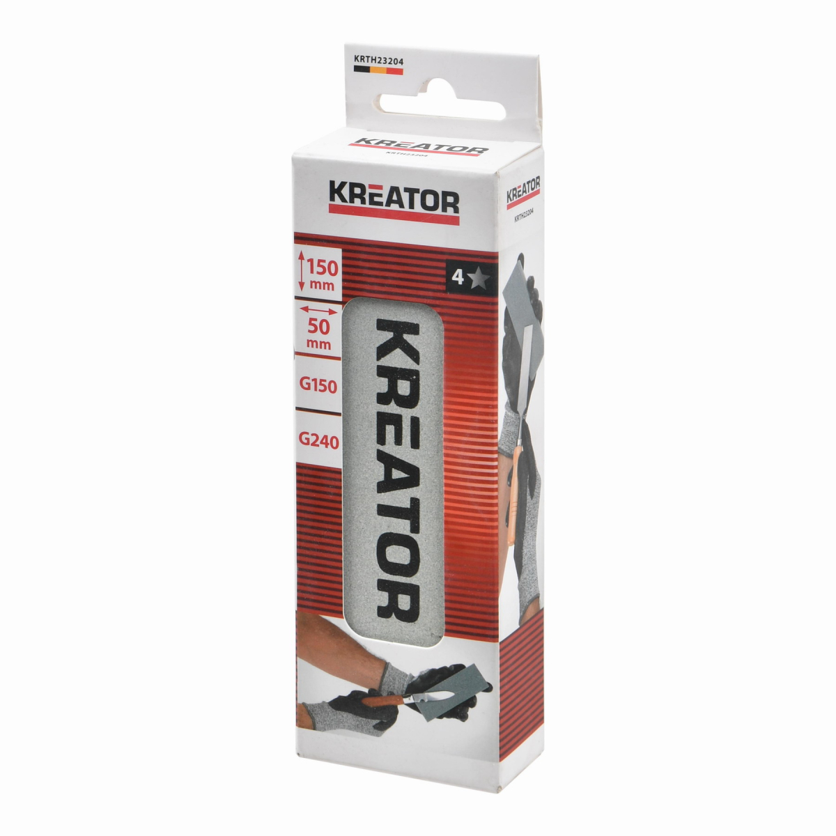 Nabrousíte si nůžky, dláta, škrabky a pilové listy s tímto brusným kamenem KRTH23204 z naší řady Kreator. Každá strana má jinou zrnitost, jemnou a střední: 150 a 240. Brusný kámen má rozměry 150 mm x 50 mm x 20 mm.