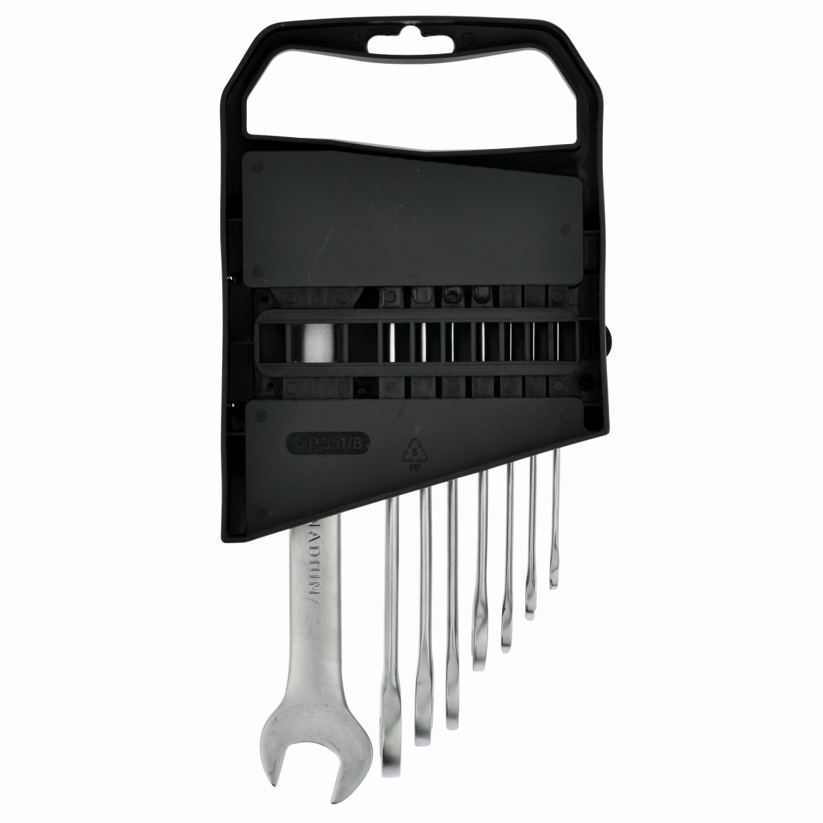 Použijte tuto 8 dílnou sadu otevřených klíčů KRTH30001 z naší řady Kreator k rychlému dotažení jakékoli matice nebo šroubu. Díky pevné konstrukci z chrom-vanadiové oceli a oboustrannému provedení klíčů můžete vybírat z různých velikostí: 6 mm –... více