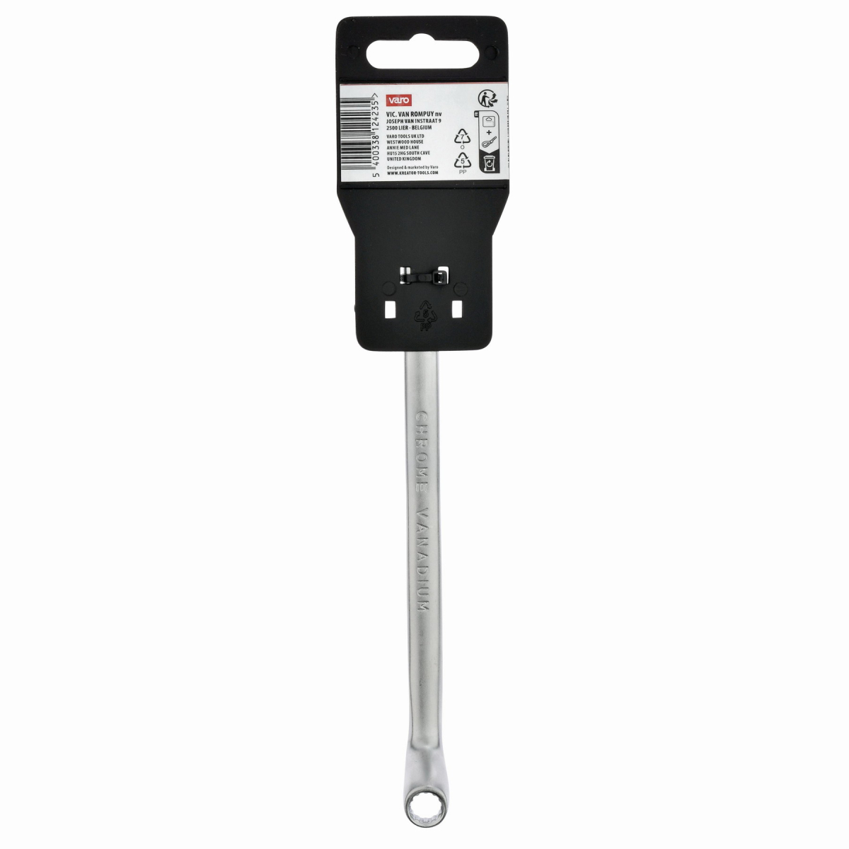 Tento dvojitý očkový klíč KRTH30302 z naší řady Kreator má délku 130 mm a je vyroben z vysoce kvalitní chrom-vanadiového slitiny. Osazené kroužky zajišťují efektivnější přenos vyvíjené síly. Konce mají otvory různých velikostí. Jeden má velikost 8 a druhý 9 mm.