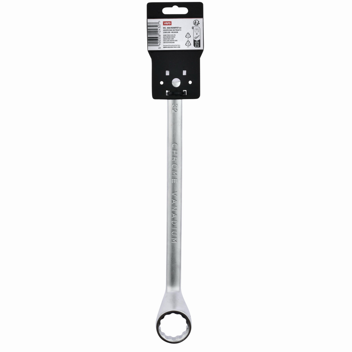 Tento dvojitý očkový klíč KRTH30311 z naší řady Kreator má délku 280 mm a je vyroben z vysoce kvalitní chrom-vanadiového slitiny. Osazené kroužky zajišťují efektivnější přenos vyvíjené síly. Konce mají otvory různých velikostí. Jeden má velikost 30 a druhý 32 mm.