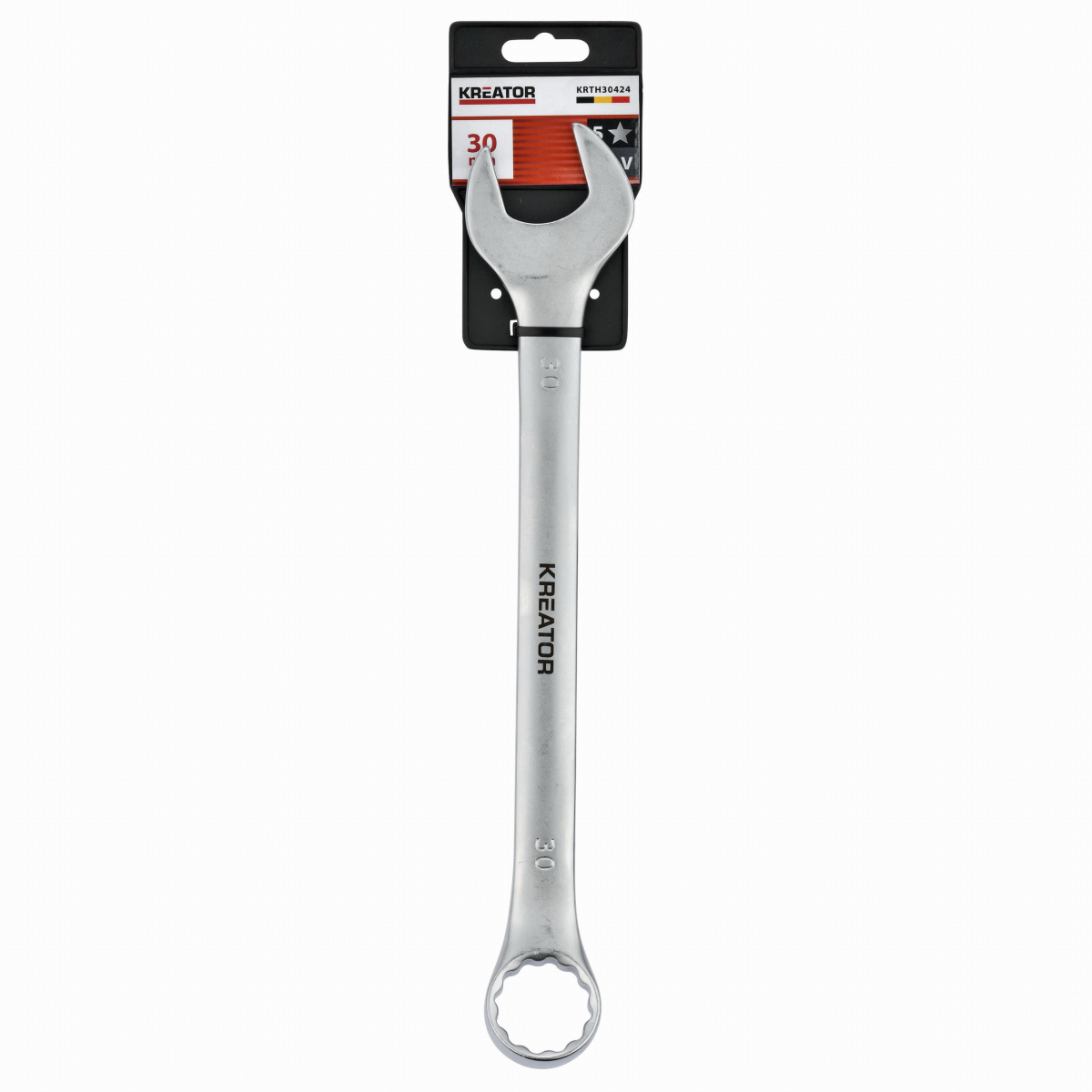 Tento kombinovaný očko / otevřený klíč KRTH30424 od Kreator je vyroben z robustní chrom-vanadiové slitiny. Eliptický tvar dříku zajišťuje lepší přenos síly. Je dlouhý 335 mm a má průměr 30 mm.