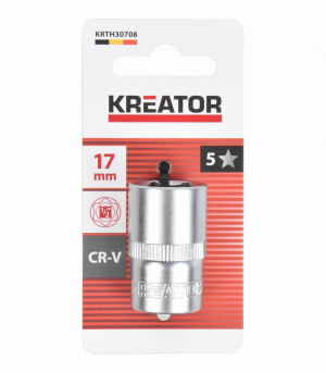 Tento nástrčný klíč KRTH30708 od Kreator o rozměru 17mm použijte k povolování nebo utahování matic a šroubů. Nástrčný klíč je vyroben z robustní chrom-vanadiové slitiny a má upínací velikost 1/2".