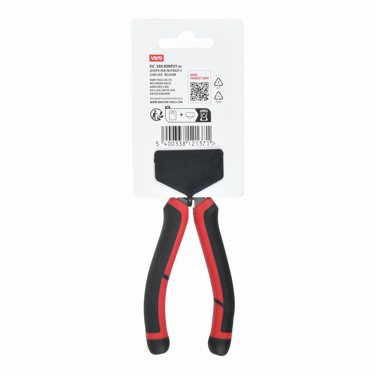 Tyto vysoce kvalitní kleště KRTH60101 od Kreator s dlouhými plochými čelistmi lze použít k držení, stříhání, odizolování a krimpování vodičů o průměru až 35 mm. Jsou vyrobeny z materiálu CR-V s povrchovou úpravou satin a mají délku 150 mm. Měkké gumové rukojeti poskytují pevný, protiskluzový úchop a pohodlné používání.