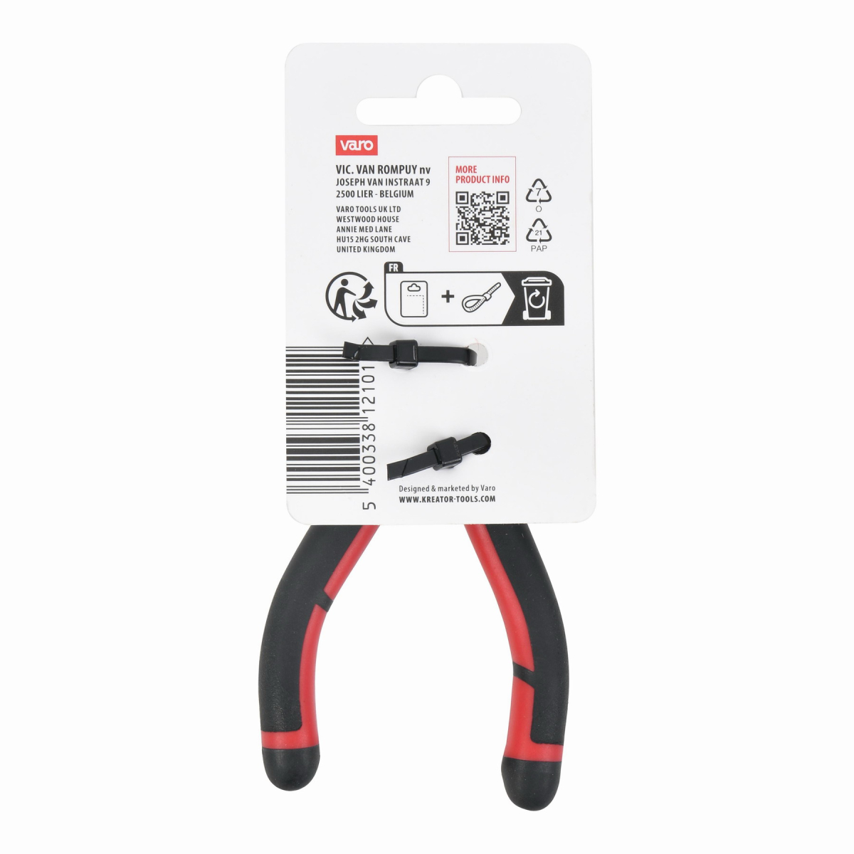 Tyto mini kleště KRTH62101 z naší řady Kreator s dlouhými čelistmi mají délku 125 mm jsou ideální pro detailní práci. Jemná špička umožňuje přesné svírání, stříhání, odizolování a krimpování. Měkké protiskluzové rukojeti zajišťují pevný a bezpečný úchop.