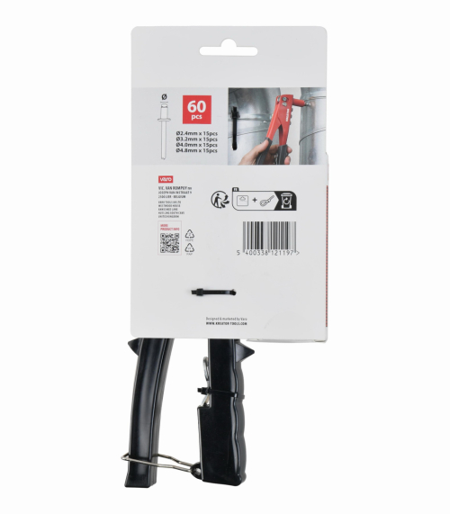Tyto nýtovací kleště KRTH62601 od Kreator se dodávají se 4 různými nástavci a 60 nýty, 15 na každý nástavec. Nástavce jsou snadno vyměnitelné. Tyto kleště používejte k snadnému spojování hliníkových nebo plastových předmětů bez použití šroubů. Kleště s ergonomickými rukojeťmi jsou navrženy pro pevný, ale pohodlný úchop, který vám umožní vyvinout maximální sílu. Naprosto nýtovací!