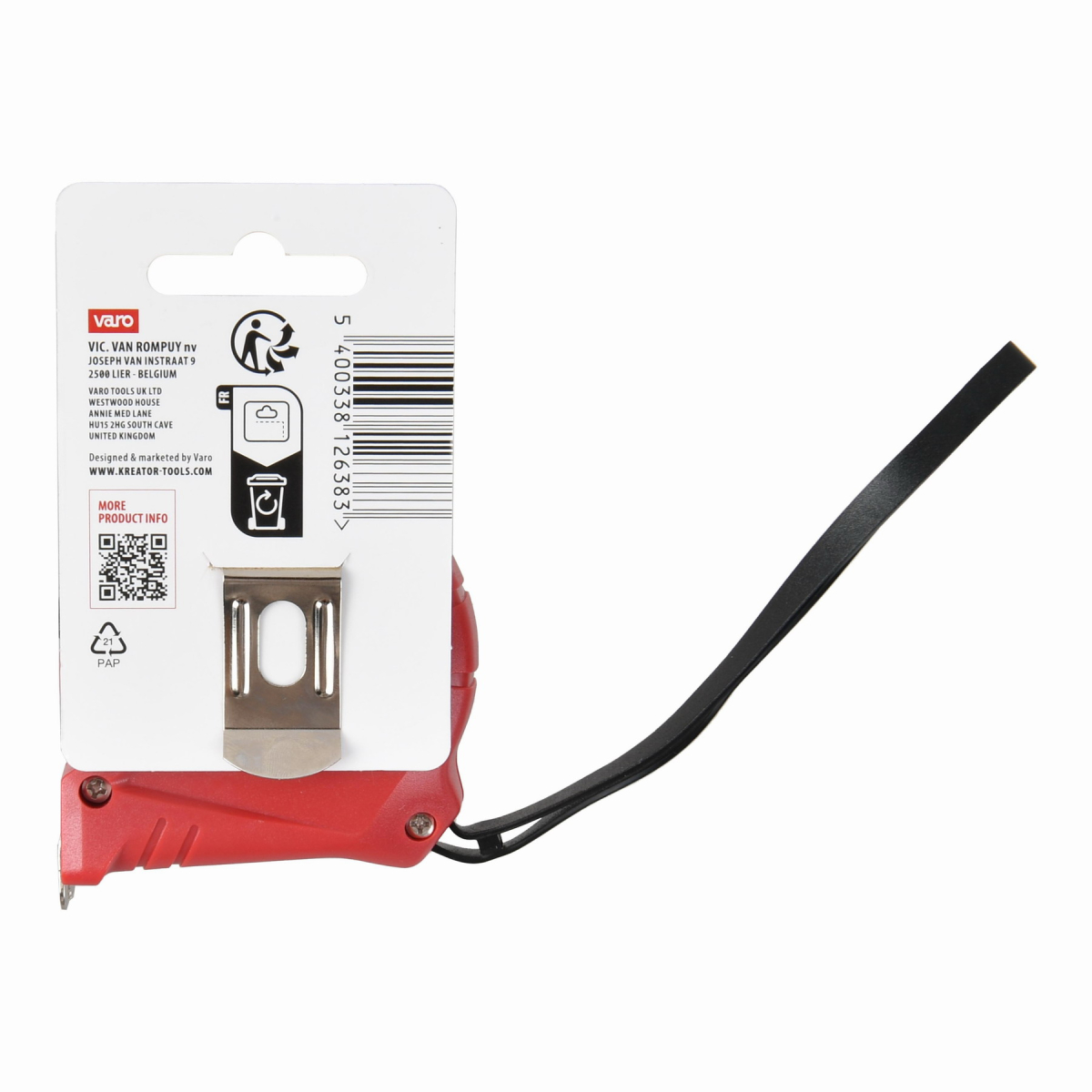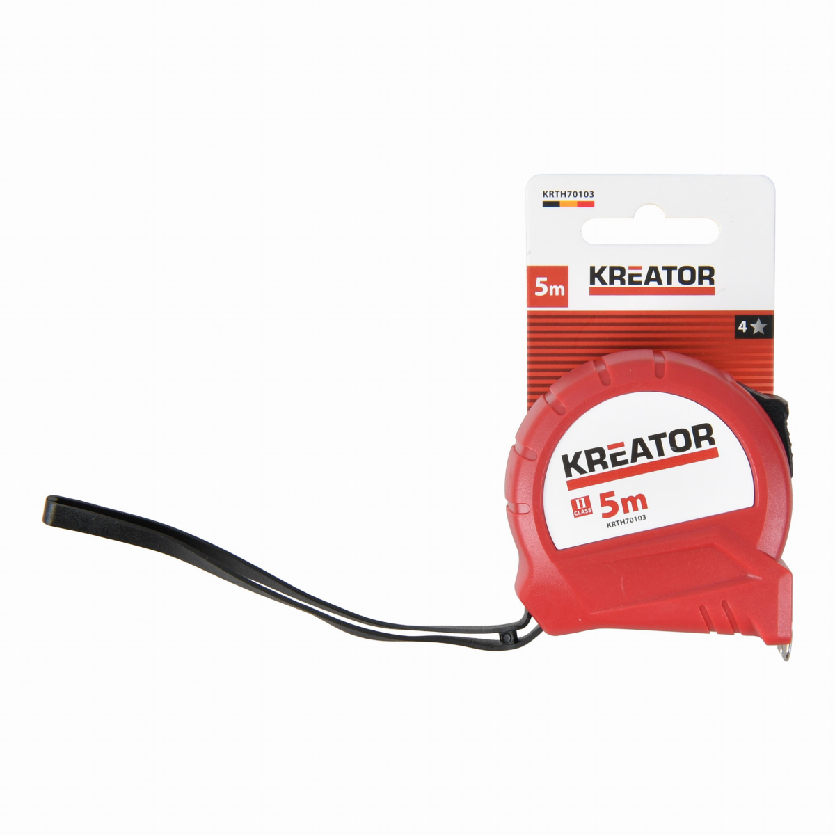 Tento svinovací metr KRTH70103 z naší řady Kreator má maximální délku 5 m. Zajistěte jej pomocí zajišťovacího tlačítka, aby se během používání nenavíjel. Pokud potřebujete mít volné ruce, můžete si metr snadno připevnit na opasek díky klipu na opasek.