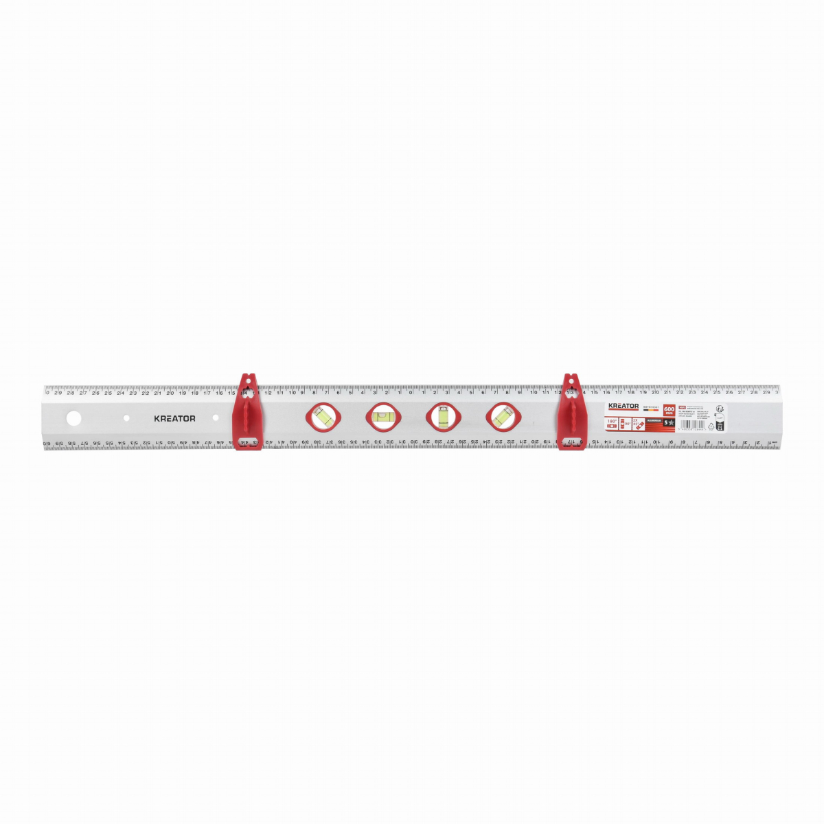 Rozlučte se s křivými nástěnnými skříňkami nebo obrazovými rámy s tímto pravítkem / vodováhou KRTH70301 z naší řady Kreator o délce 600 mm. Toto pravítko lze také použít jako vodováhu. Pomocí dvou posuvných značek si můžete vyznačit přesné vzdálenosti. Čtyři vodováhy vám umožní vyrovnat cokoli, ať už vodorovně, svisle nebo pod úhlem 45°. Navíc má integrované závěsné oko pro snadné skladování.