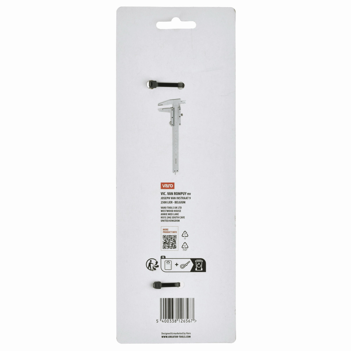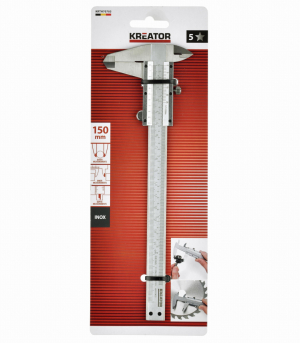 S tímto nerezovým posuvným měřidlem KRTH70703 od Kreator přesně změříte vnitřní, vnější i hloubkový rozměr až do 150 mm. Je vybaveno zajišťovacím šroubem pro fixaci naměřených hodnot a má stupnici v milimetrech i palcích.
