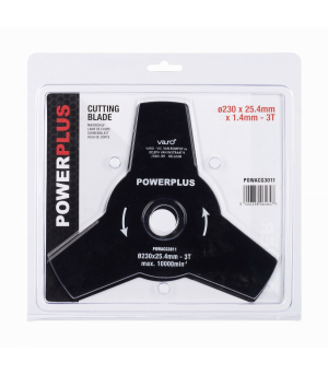 Tento žací nůž POWERPLUS je určen pro všechny křovinořezy s upínacím průměrem 25,4 mm. kotouč má průměr 230mm a síla materiálu je 1,4mm.