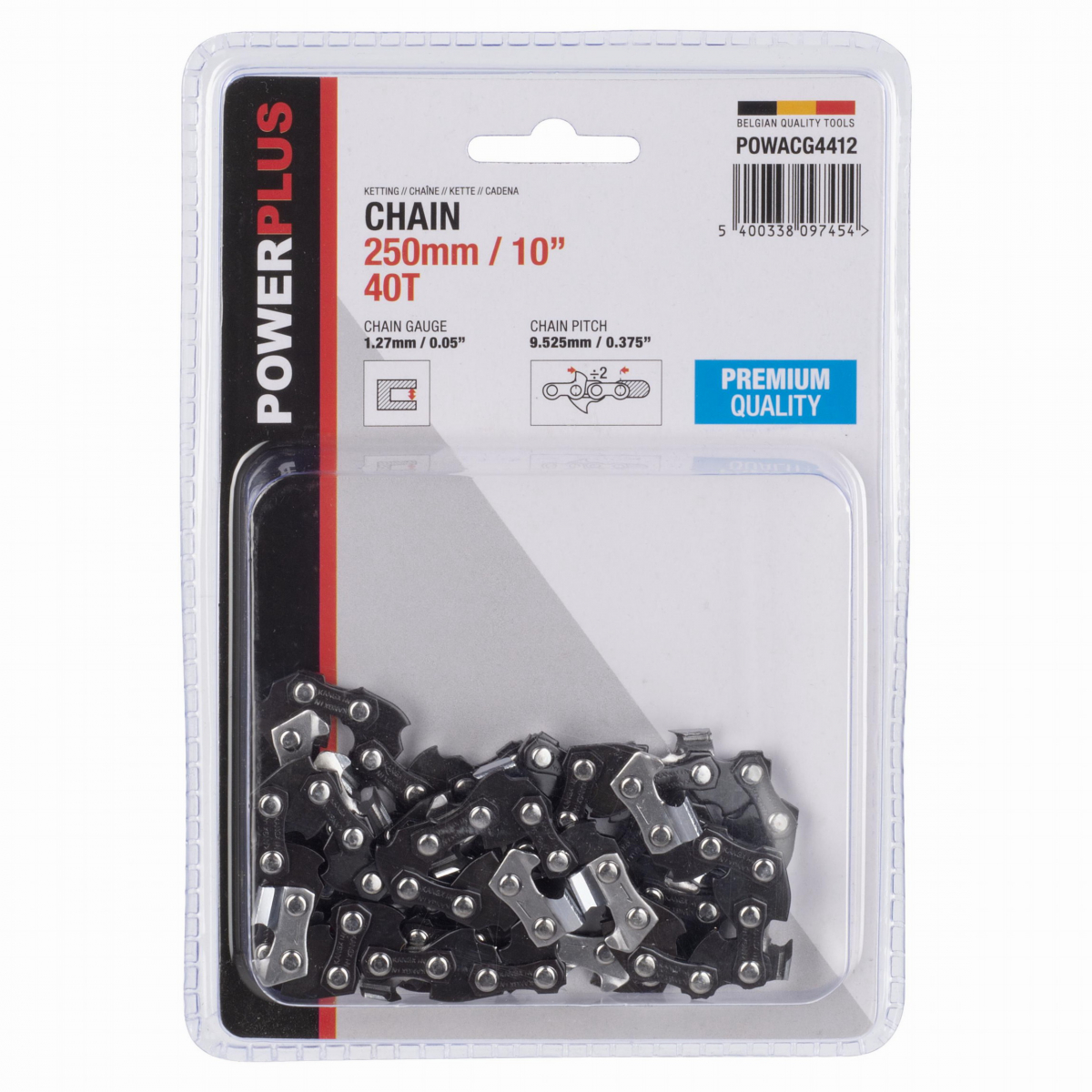 Tento pilový řetěz POWACG4412 od PowerPlus prvotřídní kvality má vylepšenou geometrickou ostrost. Jeho otočné články eliminují tření a zaručují velmi čistý řez. Řetěz je kompatibilní s motorovou pilou Powerplus POWEG2005 a POWDPG75385. Tímto vysoce kvalitním řetězem lze vybavit i jiné řetězové pily s velikostí lišty 250 mm (10“).