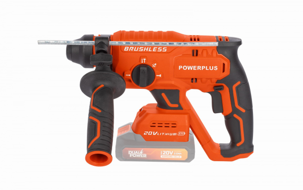 Toto aku kombinované kladivo POWERPLUS POWDP15630 20V můžete použít k vrtání, příklepovému vrtání a sekání do dřeva, kamene, oceli nebo cihel. Díky efektivnímu bezuhlíkovému motoru je nástroj mimořádně odolný a poskytuje mu sílu nárazu 3 J. Lze jej použít pro vrtání do tvrdších materiálů i pro lehčí sekání. Pohodlná práce je zaručena díky nízké úrovni vibrací a měkkému uchopení, které perfektně padne do vaší ruky. Díky praktickému pracovnímu světlu není práce v tmavých prostorách žádný problém a protiprachová krytka chrání před znečištěním vašeho stroje. Zahrnuty jsou tři vrtáky a plochý a špičatý sekáč, takže můžete začít pracovat okamžitě. Použít můžete baterie ze série DUAL POWER o napětí 20V a také i baterie o napětí 40V. Doporučujeme použít 40V baterii, která vám nabízí optimální provozní dobu.