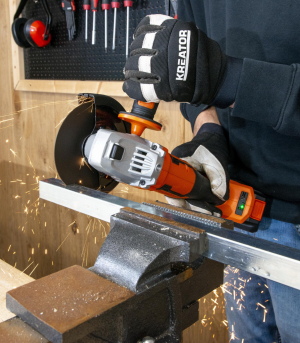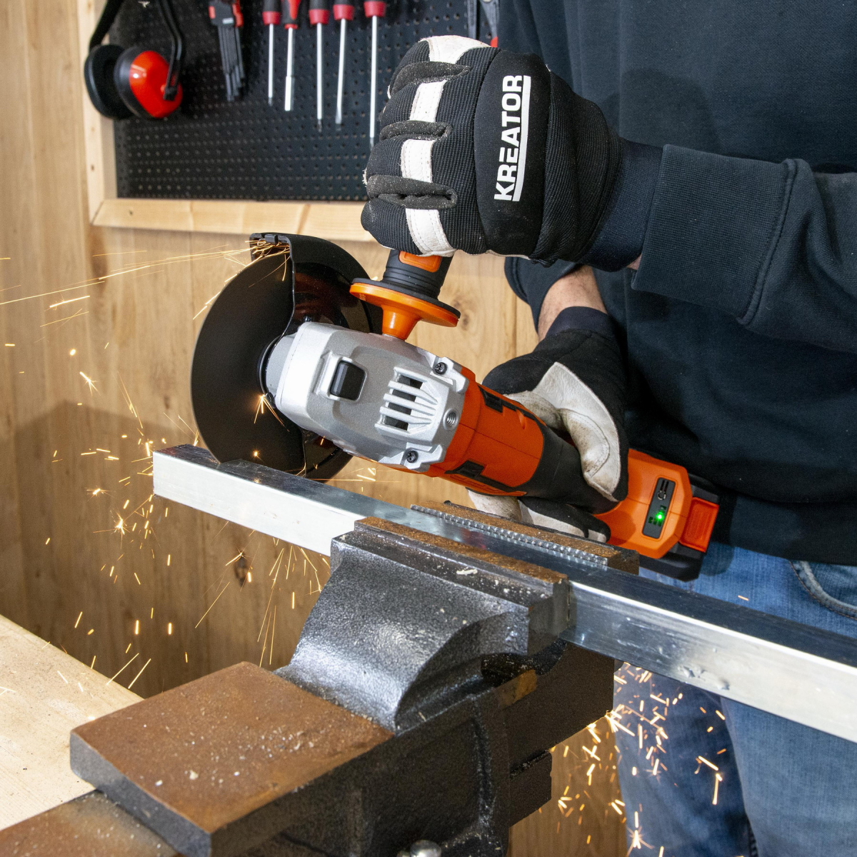 Aku úhlová bruska používá kompaktní řezný kotouč o průměru Ø125 mm, díky čemuž se snadno dostanete i do těžko přístupných míst. Nástroj je ideální pro vytváření malých drážek ve zdi, řezání a odstraňování otřepů z kovu a kamene.