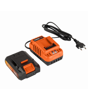 Tato sada POWDP90630 od Powerplus obsahuje vše, co potřebujete, abyste mohli začít s nářadím Dual Power, 20 V baterii a odpovídající nabíječku. Tato 20V baterie je kompatibilní se všemi elektrickými a zahradními nástroji 20 V řady Dual Power. Baterie má kapacitu 3000 mAh p. Baterie je vybavena 3 LED kontrolkami indikujícími zbývající energii baterie, abyste věděli, kdy je třeba ji nabít. Přiložená nabíječka je kompatibilní s 20V i 40V (2x20V) bateriemi Dual Power.