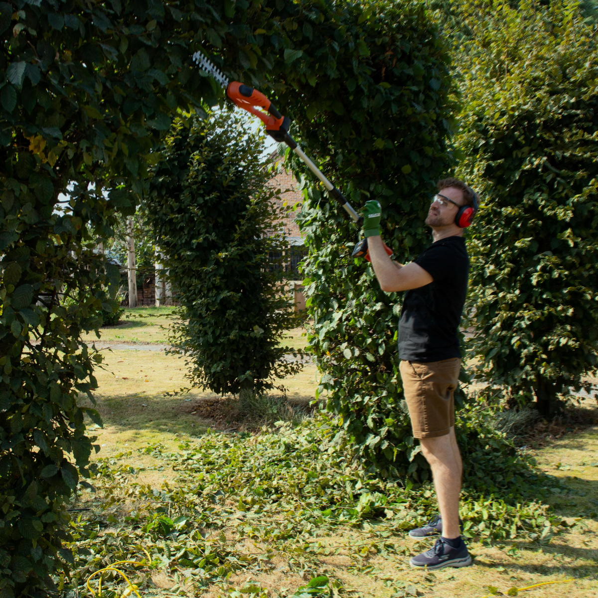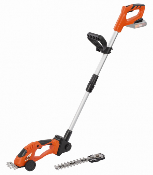 Pokud vaše tráva nebo křoví potřebuje rychle zastřihnout, jsou tyto akumulátorové nůžky 20V POWDPG75300 na trávu a keře 2 v 1 od PowerPlus ideálním nástrojem. Používejte je s teleskopickou násadou nebo bez ní. Toto praktické zahradní nářadí je ideální pro drobné zahradní práce a je vybaveno 100 mm širokým nožem pro sekání trávy a 200 mm dlouhým nožem pro prořezávání živých plotů a keřů. Teleskopická násada zabraňuje namáhání zad. Násada je roztažitelná až na 920 mm, což vám umožní udržovat okraje vašeho trávníku, aniž byste se museli neustále předklánět. Pohodlně se stříhají i vysoké živé ploty a keře. Tento všestranný stroj může fungovat 4 různými způsoby. Použijte je jako nůžky na trávu nebo jako nůžky na keře ve standardní délce nebo je použijte jako teleskopický nástroj připojením výsuvné násady. Při použití nůžek na trávu / keře s teleskopickou hřídelí pomáhají kolečka vést nářadí podél okrajů trávy. Pokud chcete nářadí používat bez teleskopické násady, jednoduše kolečka sejměte. Snadno upravte nástroj pro sekání trávy nebo křovin připojením správného nože jednoduchým kliknutím. Díky šířce střihu 100 mm u nůžek na trávu a délce střihu 185 mm u nůžek na keře bude vaše práce hotová během okamžiku. Otočnou rukojeť lze nastavit do 5 různých poloh, zatímco otočná hlava má až 8 různých poloh. Nářadí můžete plně přizpůsobit své pracovní poloze, takže můžete sledovat tvar svého křoví nebo živého plotu, aniž byste se museli ohýbat do nepohodlných pozic. Vždy se budete cítit pohodlně, i když budete pracovat delší dobu. Chcete-li tento nástroj přeměnit z nůžek na trávu na nůžky na keře nebo naopak, jednoduše odpojíte jeho kolečka, stisknete 2 tlačítka po stranách nožů a zajistíte správný nůž. Stroj je dodáván bez baterie a nabíječky. Použít můžete baterie ze série DUAL POWER o napětí 20V a také i baterie o napětí 40V. Použití 40V baterie zajišťuje ještě delší dobu chodu stroje ve srovnání s 20V verzí.