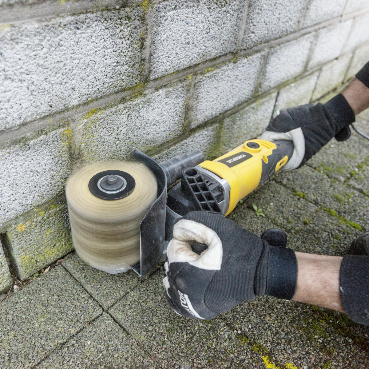 Bruska je dodávána s ocelovým kartáčovým kotoučem KRT271005, takže můžete ihned začít! Tento kartáč je ideální pro hrubé odstraňování nátěrů z tvrdého dřeva nebo nečistot ze kamene či betonu.
