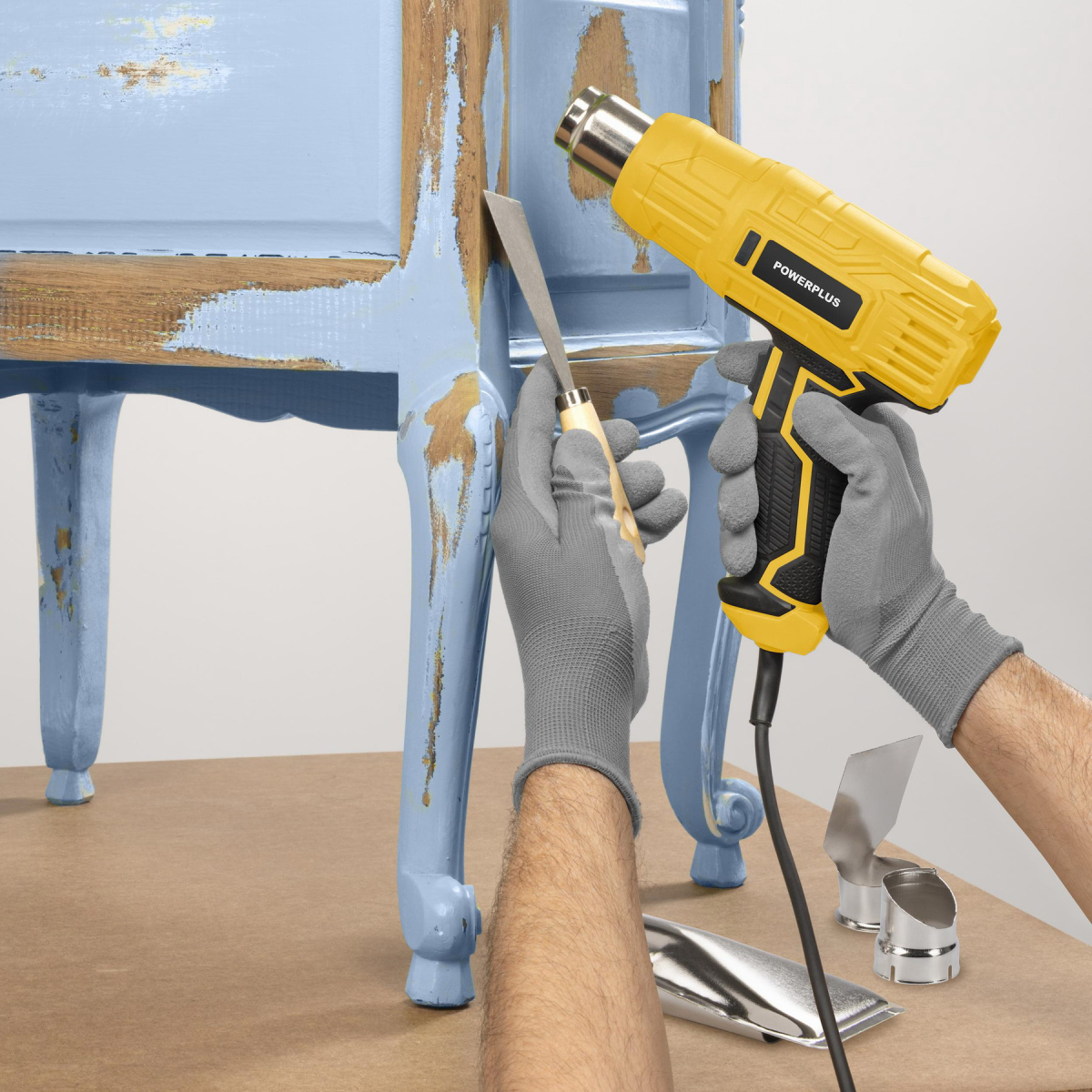 Horkovzdušná pistole urychluje únavnou část rekonstrukčních projektů. Chcete dát své skříňce nový vzhled, ale nejdříve potřebujete odstranit starou vrstvu barvy? Použijte tuto horkovzdušnou pistoli a zvládnete práci rychle. Tato horkovzdušná pistole POWX1015 od Powerplus zaručuje optimální odvod tepla a je ideální pro odstraňování lepidla a barvy. Horkovzdušná pistole je dodávána se 3 tryskami, takže se můžete okamžitě pustit do práce.