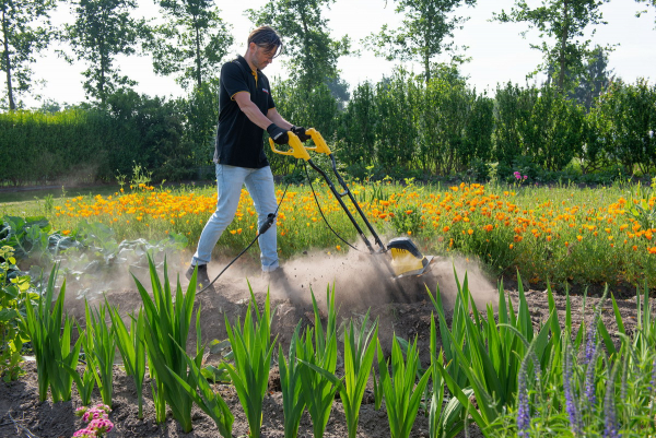 Tento elektrický kultivátor Powerplus POWXG72010 o příkonu 1.500 W se hodí pro menší zahrady. Je vybaven šesti ocelovými noži a má pracovní šířku 450 mm s max. pracovní hloubkou 220 mm. Kultivátor lze použít k odstranění plevele nebo přimíchání hnojiva nebo kompostu do půdy. Tímto způsobem bude vaše zahrada připravena na sezónu, aniž byste si museli zašpinit svoje ruce. Měkčený úchop a robustní kola vám umožní pracovat pohodlně.