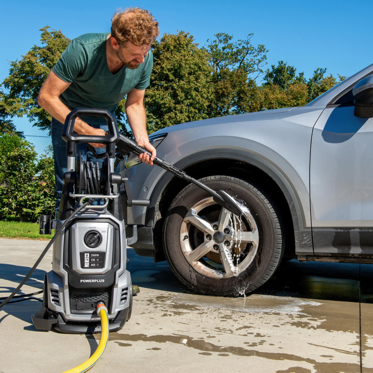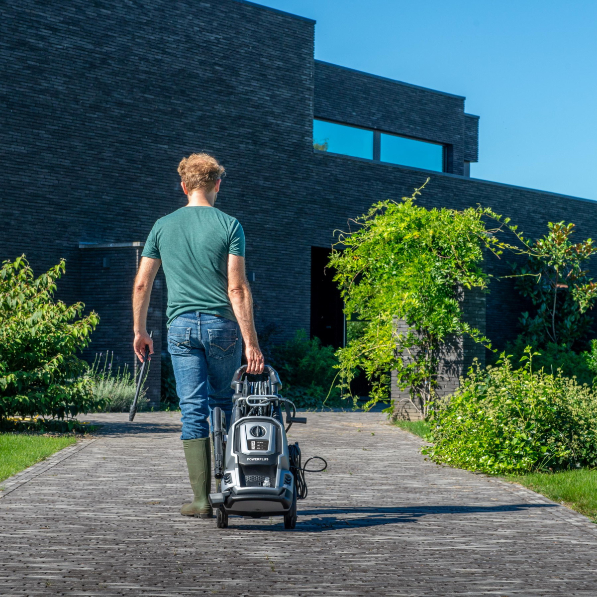 Proti této vysokotlaké myčce, vybavené výkonným 2500W motorem, nemá šanci ani ta nejodolnější špína. Tento vysokotlaký čistič POWXG90426 od Powerplus je skutečným všestranným pomocníkem. Má vestavěnou nádržku na čisticí prostředek o objemu 1,1 l. S maximálním tlakem vody 195 bar je tato tlaková myčka perfektní pro náročné čištění, např. vaše okapy nebo příjezdovou cestu. Tlaková myčka má maximální průtok 468 l/hod.. Díky indukčnímu motoru má stroj delší životnost, vyžaduje méně údržby a produkuje méně hluku než stroj s běžným motorem. Tento vysokotlaký čistič je vybaven systémem start/stop, což znamená, že se nespustí, pokud není zapnutý a nestisknete spoušť. Čistič se zastaví, jakmile pustíte spoušť. Systém, který šetří vodu a elektřinu. Vysokotlaký čistič má vestavěný hadicový naviják pro snadné navíjení vysokotlaké hadice, která má délku 8m. To udržuje hadici bez zauzlování a umožňuje kompaktní skladování. Hadice navíc zůstává připojena k tlakové myčce. V kombinaci s vedením hadice to zjednodušuje navíjení a odvíjení navijáku hadice. Rukojeť tohoto vysokotlakého čističe lze prodloužit od 720 do 910 mm. Robustní kola unesou velkou část hmotnosti tlakové myčky. Zabraňuje namáhání vašich zad, umožňuje snadný pohyb a nezažijete mnoho nepříjemností ani po delší dobu.