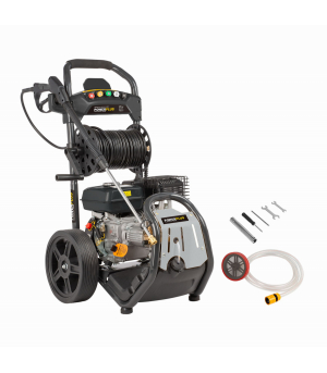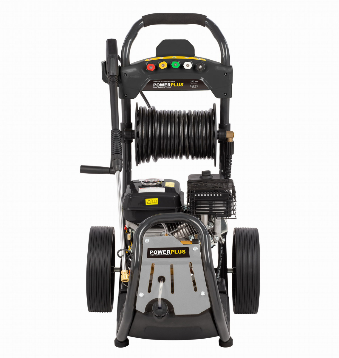 Díky výkonnému benzínovému motoru o objemu 210 ccm zvládne tlakový čistič POWXG9100 POWERPLUS i ty nejnáročnější práce. Čtyřtaktní motor poskytuje výkon až 5100 W. Průtok vody 540 litrů za hodinu a maximální tlak až 270 barů zajišťují vždy čistý výsledek. Je to ideální benzinová tlaková myčka pro nejnáročnější úkoly. Čištění teplou vodou je možné, protože tlakový čistič vydrží teploty až 60° C. Integrovaná nádrž na čisticí prostředek zajišťuje nejčistší výsledky. POWXG9100 je vybaven vysoce kvalitním měděným čerpadlem, které zajišťuje lepší výkon a prodlužuje životnost tlakové myčky. Zařízení lze připojit k běžnému vodovodnímu řádu, ale je také vybaveno režimem sání. Při použití tohoto režimu lze 2 metry dlouhou hadici použít k čerpání vody z kbelíků, rybníků a studní. Díky obtokovému systému je tlakový čistič bezpečným nástrojem pro čištění. Když se uvolní spoušť tlakové myčky, voda bude přiváděna samostatným obtokovým okruhem. Tam se čerpá čerpadlem při konstantním tlaku 10 bar. Tím se zabrání prasknutí hlavy čerpadla tlakové myčky v důsledku přetlaku a motor se nevypne při každém uvolnění spouště. Vzhledem k 3litrové benzinové nádrži není třeba otravných prodlužovacích kabelů. 20 metrů dlouhá tlaková hadice poskytuje potřebnou volnost pohybu. Kromě toho je tlaková myčka připevněna na robustním podvozku se dvěma koly, takže jej lze snadno přepravovat.