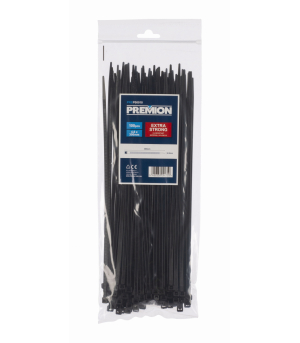 Tato sada PREP00010 od Premion obsahuje 100 ks černých nylonových stahovacích pásek 4,8 x 300 mm. Tyto extra pevné stahovací pásky mají vysokou pevnost v tahu. Použijte je k úhlednému svázání kabelů nebo ke snadnému vzájemnému spojení předmětů. Úhledně ukryjte kabely a vodiče například ve své kanceláři nebo dílně tím, že je svážete pomocí těchto kabelových stahovacích pásků. Navíc jsou tyto stahovací pásky odolné vůči UV záření.