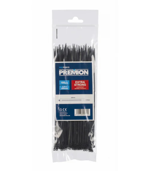 Tato sada PREP00014 od Premion obsahuje 100 ks bílých nylonových stahovacích pásek 7,6 x 540 mm. Tyto extra pevné stahovací pásky mají vysokou pevnost v tahu. Použijte je k úhlednému svázání kabelů nebo ke snadnému vzájemnému spojení předmětů. Úhledně ukryjte kabely a vodiče například ve své kanceláři nebo dílně tím, že je svážete pomocí těchto kabelových stahovacích pásků. Navíc jsou tyto stahovací pásky odolné vůči UV záření.