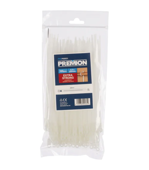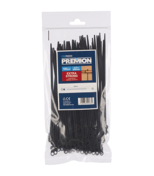 Tato sada PREP00030 od Premion obsahuje 100 ks černých nylonových stahovacích pásek 4,8 x 200 mm s otvorem. Tyto extra pevné stahovací pásky mají vysokou pevnost v tahu. Použijte je k úhlednému svázání kabelů nebo ke snadnému vzájemnému spojení předmětů. Úhledně ukryjte kabely a vodiče například ve své kanceláři nebo dílně tím, že je svážete pomocí těchto kabelových stahovacích pásků. Navíc jsou tyto stahovací pásky odolné vůči UV záření.