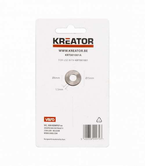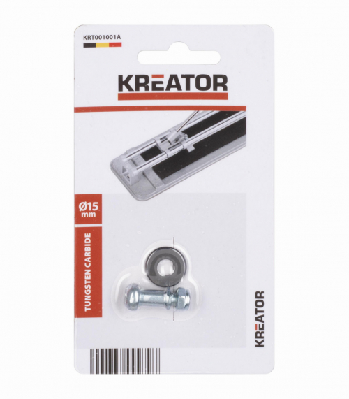 Potrebuje vaša rezačka dlaždíc nový rezací kotúč? Toto rezacie koliesko KRT001001A má priemer 15 mm a je kompatibilné s rezačkou dlaždíc KRT001001 z radu Kreator.