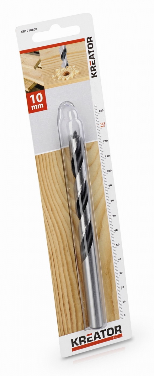 Vrták do dreva s centrovací špičkou, vhodný pre vŕtanie v tvrdom a mäkkom dreve, upínacích doskách, dýhovanom nábytku a preglejke.