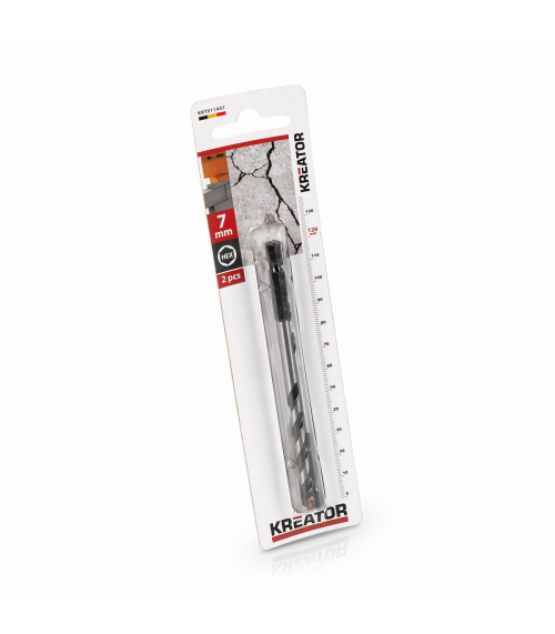 Pomocou týchto vrtákov KRT011407 od Kreator môžete bez námahy prevŕtať kameň alebo kamenné murivo. Sú opatrené šesťhrannou stopkou 1/4", ktorá uľahčuje ich pripevnenie k (magnetickému) držiaku bitov. Táto sada obsahuje 2 vrtáky do kameňa s priemerom 7 mm a dĺžkou 120 mm.