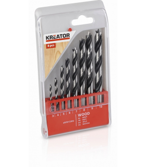 Táto sada obsahuje 8 vrtákov do dreva s priemermi 3–10 mm.