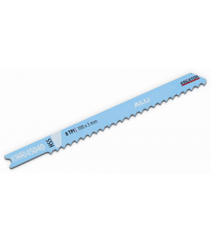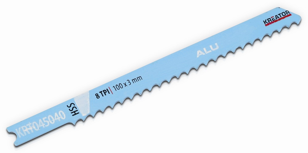 Táto sada obsahuje 2 priamočiare pílové plátky z HSS určené na rezanie hliníka. Majú 8 zubov na palec (TPI), dĺžku 100 mm a U upínanie. Sú kompatibilné s väčšinou priamočiarok.