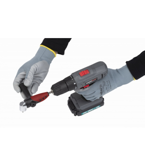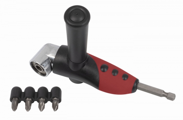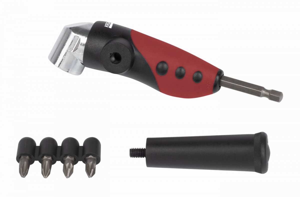 Umiestnite tento uhlový držiak bitov na vŕtačku / skrutkovač a utiahnite a povoľte skrutky a matice na takmer nedostupných miestach a v uhloch 90 °.