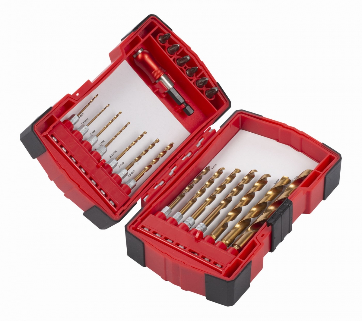 V tejto 21-dielny sade vrtákov a skrutkovacích bitov nájdete nepochybne to správne príslušenstvo pre všetky vaše vŕtačky a skrutkovače: PH bity, PZ bity, v rôznych veľkostiach, držiak bitov s rýchlou výmenou, vrtáky do dreva a kovu. Sada je dodávaná v praktickom puzdre s pogumovanými rohmi o rozmere 173x113x53 mm.