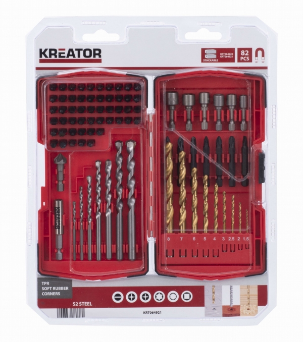 V tejto 82dílné sade vrtákov a skrutkovacích bitov nájdete nepochybne to správne príslušenstvo pre všetky vaše vŕtačky a skrutkovače: PH bity, PZ bity, T bity, v rôznych veľkostiach, držiaky bitov, vrtáky do dreva a kovu, nástrčné kľúče ... .. Sada je dodávaná v praktickom puzdre s pogumovanými rohmi o rozmere 193x113x53 mm.