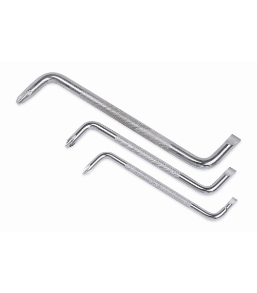 Uťahovanie alebo povoľovanie skrutiek na ťažko prístupných miestach už nie je problém vďaka týmto stranovým skrutkovačom KRT410004 od KREATOR. Súprava obsahuje 3 obojstranné chromvanadiové skrutkovače s rozmermi: SL3 – SL4 – SL5/PZ0 – PZ1 – PZ2.