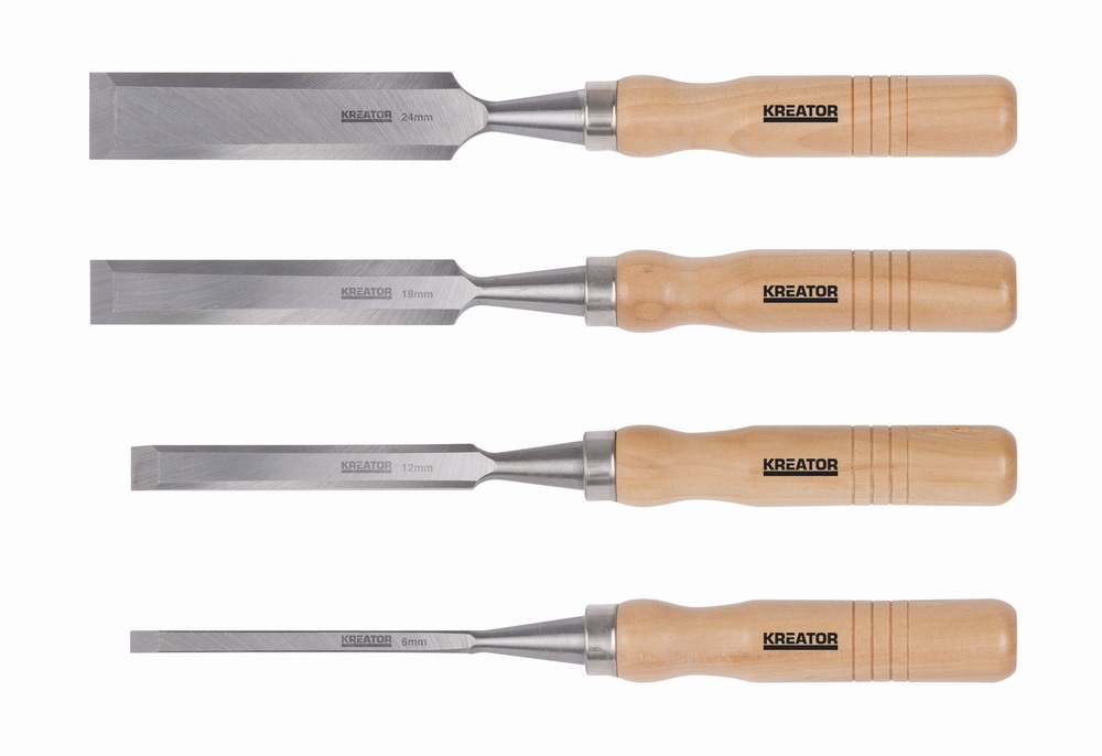 KRT461003 Dláta na drevo sada 4ks-drevená rukoväť