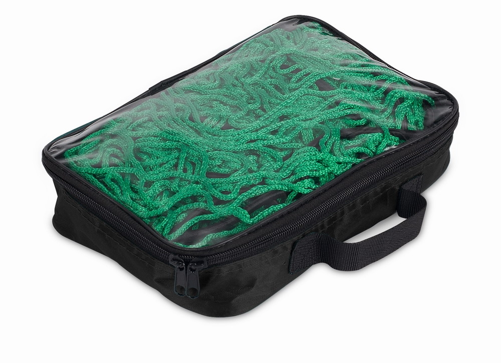 Sťahovacia guma: Ø6mm Sieť materiál PP Ø3mm Rozmer: 1,5 x 2,2m Čierna taška na zips pre uskladnenie