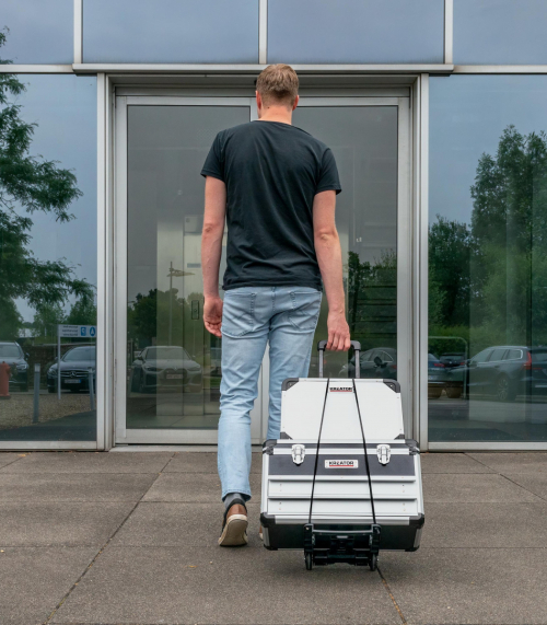 Tento ručný vozík KRT670205 značky Kreator je ideálny na sťahovanie ťažkých krabíc, debien alebo malých kusov nábytku. Dokáže uniesť váhu až 40 kg bez toho, aby ste mali pocit, že musíte vynaložiť akékoľvek úsilie. Vozík je vybavený pevnými kolieskami. Vďaka sklopnej platforme 315 x 250 mm a sklopnej rukoväti je možné tento praktický a kompaktný ručný vozík ľahko uložiť napríklad do kufra auta. Okrem toho je možné madlo upevniť v 2 rôznych výškach, takže môžete vždy pracovať v najpohodlnejšej polohe. Nakoniec je tento ručný vozík dodávaný s praktickou sťahovacou gumou, ktorá drží náklad na mieste a umožňuje jednoduchú prepravu.