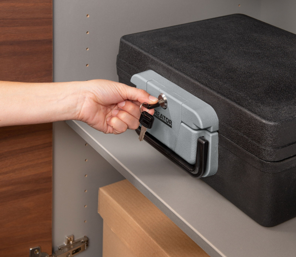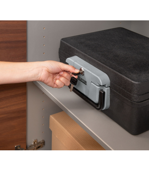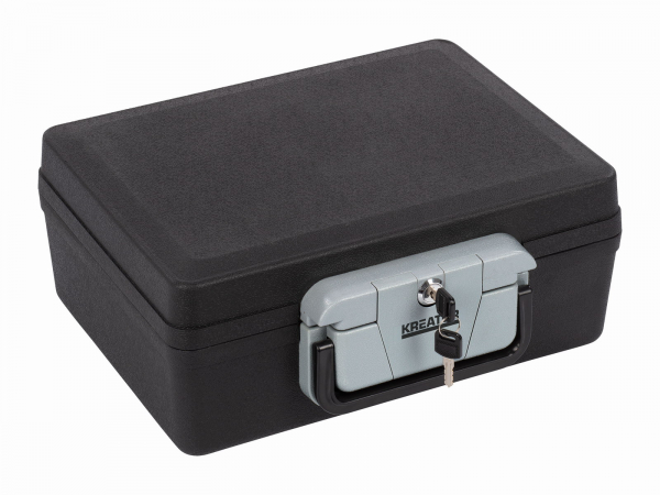 Tento praktický trezor KRT692005 od spoločnosti Kreator meria 390 x 335 x 160 mm a poskytuje dostatok priestoru pre bezpečné uloženie všetkých druhov cenností. Vďaka kompaktnej konštrukcii ho možno ľahko uložiť takmer do akejkoľvek skrine. Robustný trezor je vyrobený zo zlepšených ohňovzdorných materiálov, preto vydržia teploty 842 ° C až 30 minút. Tento trezor je tiež vodotesný. So skladacou ergonomickou rukoväťou možno trezor ľahko prepravovať. Zámok na kľúče s dvoma kľúčmi zaisťuje, že všetky cennosti zostanú bezpečne uzamknuté.