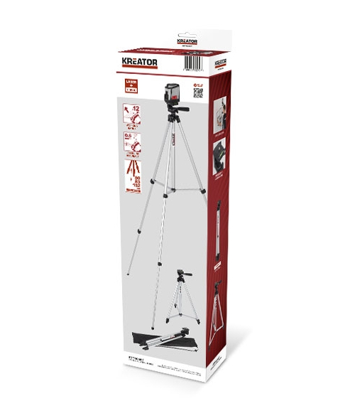 Od tejto chvíle budete obkladať stenu alebo vešať veci presne a rovno, pretože ste schopní premietať horizontálne a vertikálne čiary veľmi presne. To je to, čo môžete očakávať od tohto krížového lasera Kreator, ktorý dosahuje až 12 metrov ďaleko. Samonastavovacie krížový laser sa vyrovná do šiestich sekúnd s presnosťou 0,6 mm / meter. Umiestnite KRT706300T priamo na stôl alebo skriňu a alebo ho umiestnite ešte stabilnejšie na dodávaný hliníkový statív. Jeho výška je nastaviteľná od 50 cm do 152 cm, ako vám bude najlepšie vyhovovať.
