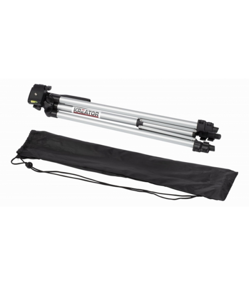 K tomuto hliníkovému statívu Kreator pripevníte laser a umiestnite ho tak stabilne vo výške až 152 cm. Môžete si ale vybrať aj výšku 50 cm, alebo 83 cm podľa toho, čo vám najlepšie vyhovuje. Tento teleskopický statív má štandardné skrutku, a preto je kompatibilný s mnohými ďalšími prístrojmi. Napríklad ho môžete použiť aj pre fotoaparát. Statív je ľahko prenosný v priloženom puzdre.